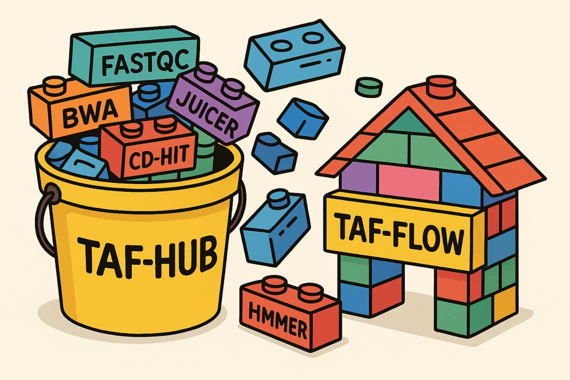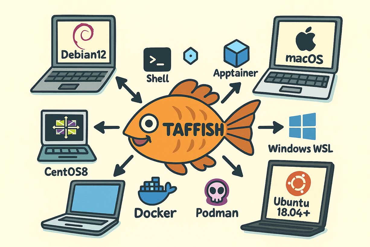 TAFFISH allows you to avoid worrying about software installation, environment conflicts, container management, cluster operations, ...... Build, use, and share your own portable, reproducible scientific workflows just like shell commands.